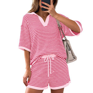 On FondMart, you can buy the best women's two-piece short sets wholesale from our trusted suppliers. We offer the most affordable option in the wholesale market. These excellent two piece short sets wholesale are categorized according to the clothing length, sleeve style, material, waist type, sleeve length, collar, and other features. For example, if you are looking for comfortable and also elastic clothing, you can buy from our cotton blend two-pieces wholesale. For durability and managing moisture, you can pick from polyester two-piece sets wholesale that are excellent and long-lasting.